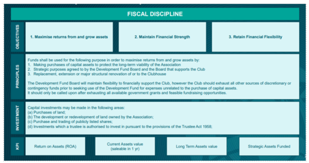 The purpose of the Development Fund Board is to protect the long-term financial viability of the Club by investing in or purchasing capital assets in order to: