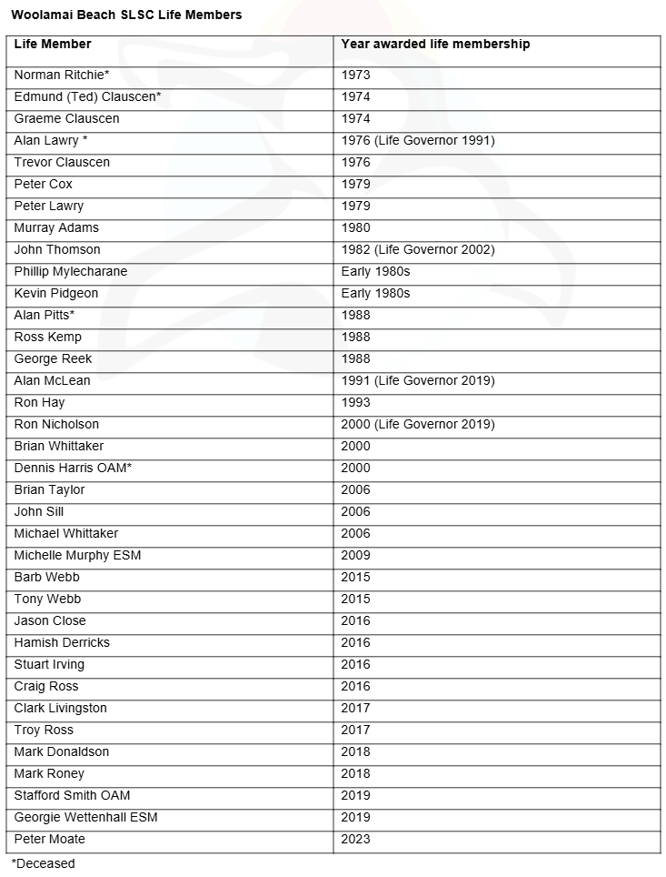 Life Members Woolamai Beach SLSC Life Members Woolamai Beach SLSC20 July 2025 Facebook0 Twitter LinkedIn0 0 Likes