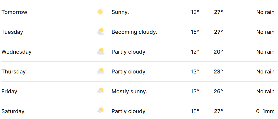 The BoM’s 7 day forecast is looking positive, so don’t forget your sun protection and to slip, slop, slap!